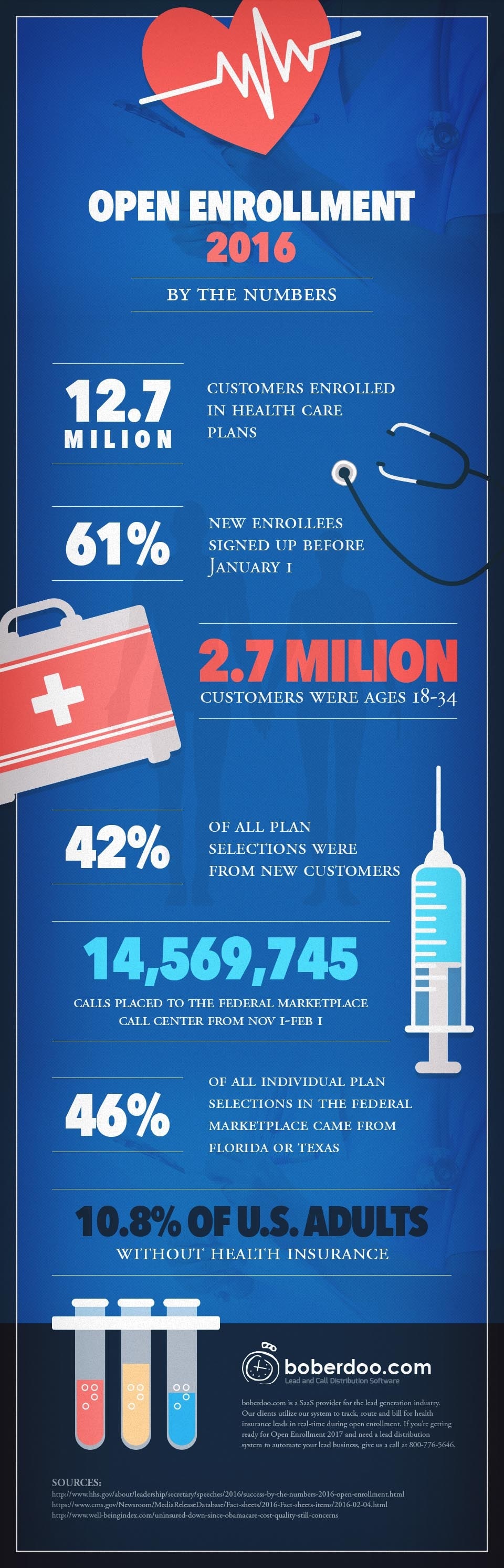 Open enrollment is fast approaching and like we explained in a recent post, health insurance lead generators need to start preparing now. In order to properly prepare for the upcoming open enrollment period (November 1, 2016-January 21, 2017) and the medicare open enrollment period (October 15, 2016-December 7, 2016) we thought it would be useful to put last year's numbers into perspective. With Open Enrollment 2017 expected to bring even more enrollments and even more web and call traffic than last year, health insurance lead generators can start making decisions now that can make huge dividends on their yearly revenue.