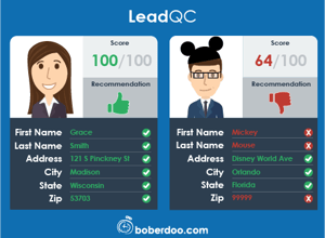 leadQC is boberdoo's proprietary lead verification system (which is a fancy way to say quality check) and is already built into each leadsystem. There are multiple reasons why leadQC stands out from other quality checks. There are over 30 different verification checks that it runs and compares the data against 5 different sources and each lead is scored from 0-100 and shows you all the results for why the lead received the score it was given. The client then determines what a pass or a fail is so that leadQCs filters work with their specific use case.